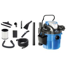 5 0 peak hp portable wall mountable wet dry shop vacuum with filter hose and accessories powerful and portable wall mounted vac is a versatile space saver on board storage for included hoses and accessories.